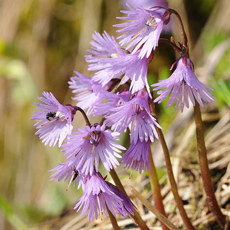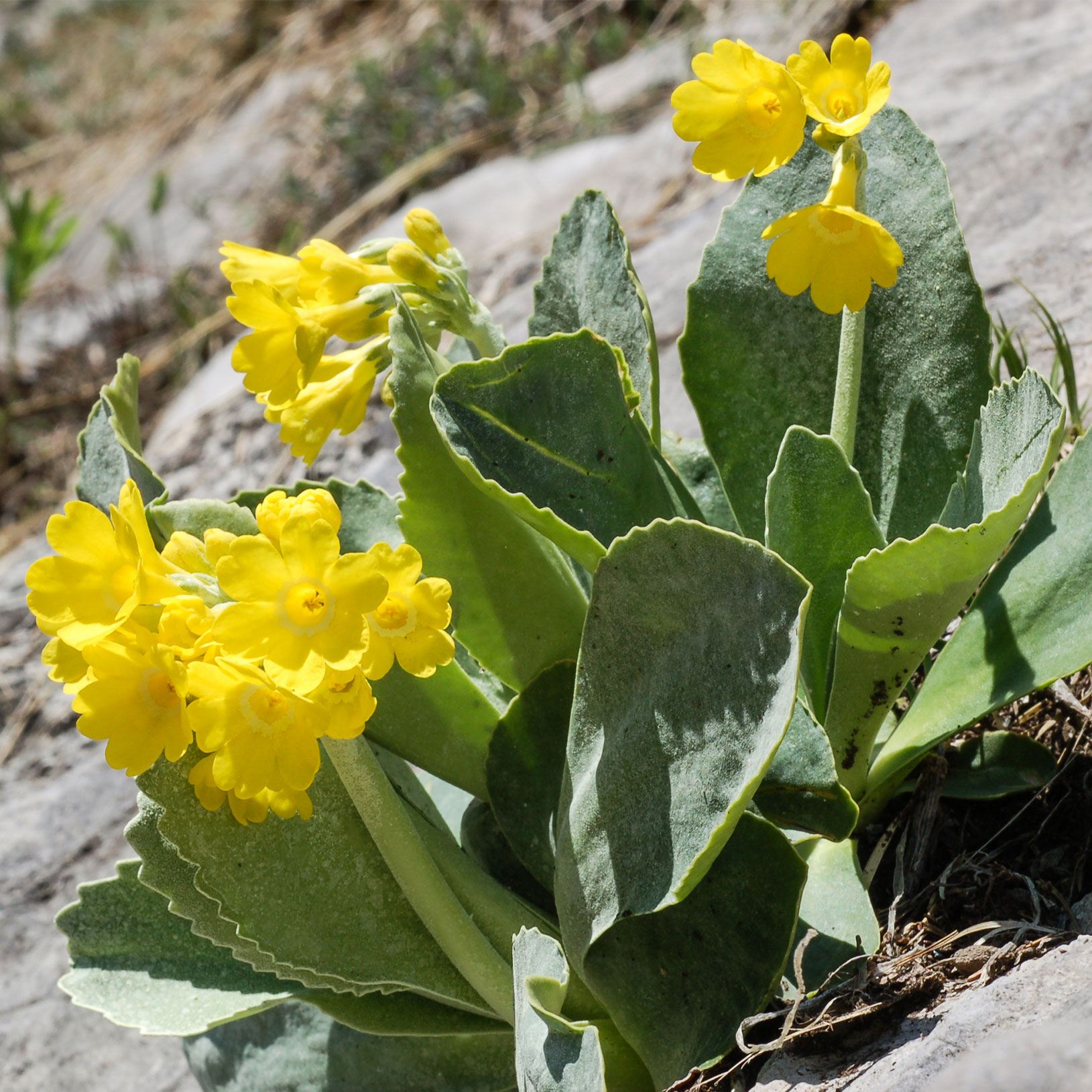 Primula comes from the Latin primus (the first) because it is one of the first flowering plants in spring. Related to the classic primrose, the flour primrose has a white coating on its underside. It is one of the most common alpine primroses. The primrose genus was so popular in medicine because of its medicinal properties that it almost became extinct and is now protected. There are around 65 species in the Alps.