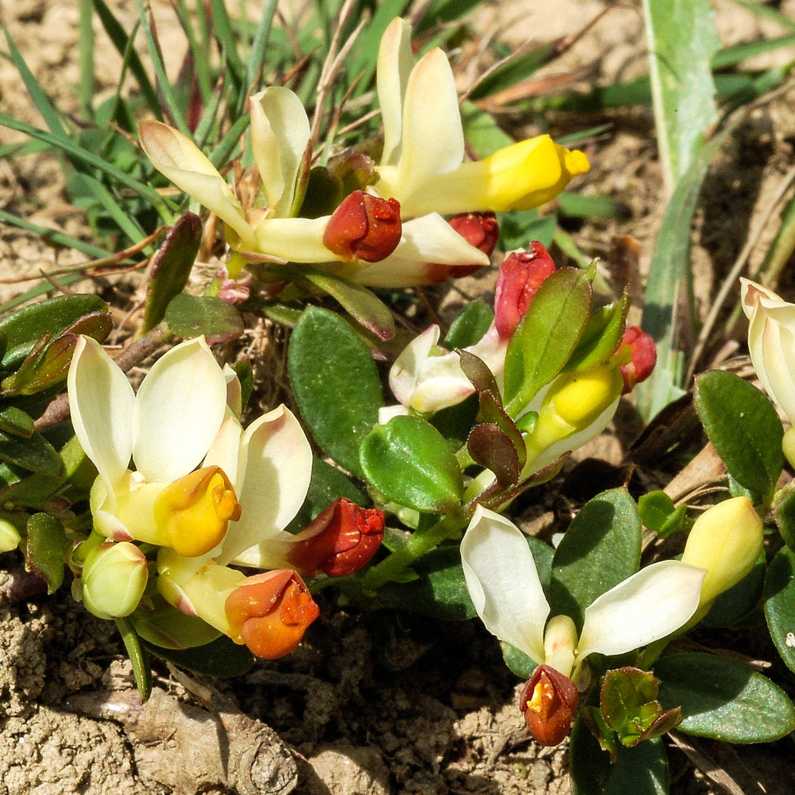Lotus alpinus (Alpine "horn clover") is one of the forgotten plants in folk medicine. Its cyan hydrogen compound can be dangerous, so it is important to use caution. It is said to strengthen nerves and to offer slight remedy against anxiety or mental exhaustion that comes along with sleep problems. The taproot of this type can reach as deep as 1 meter. The name comes from the blossom that looks like a small horn and which results in visiting species having to squeeze out the pollen. This plant is related to the common Hornwort in deeper valleys and is connected through morphological transitions.