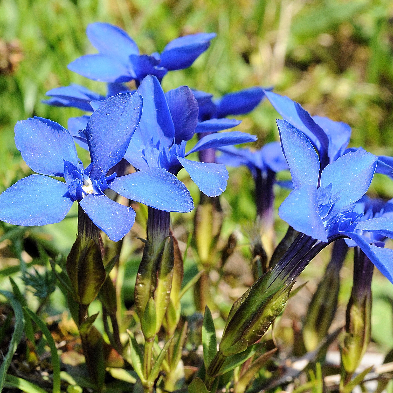 The word ''gentian'' reminds one of the blue flower stars. However, there are also yellow, white, violet, and crimson gentians. Since ancient times, for example, the yellow gentian has been acclaimed in the treatment of stomach ailments. The gentian root can be consumed in small doses. Its bitter substances stimulate the taste buds, thus increasing the secretion of saliva and gastric juices. 50 different types of this plant family can be found in the Alps.
